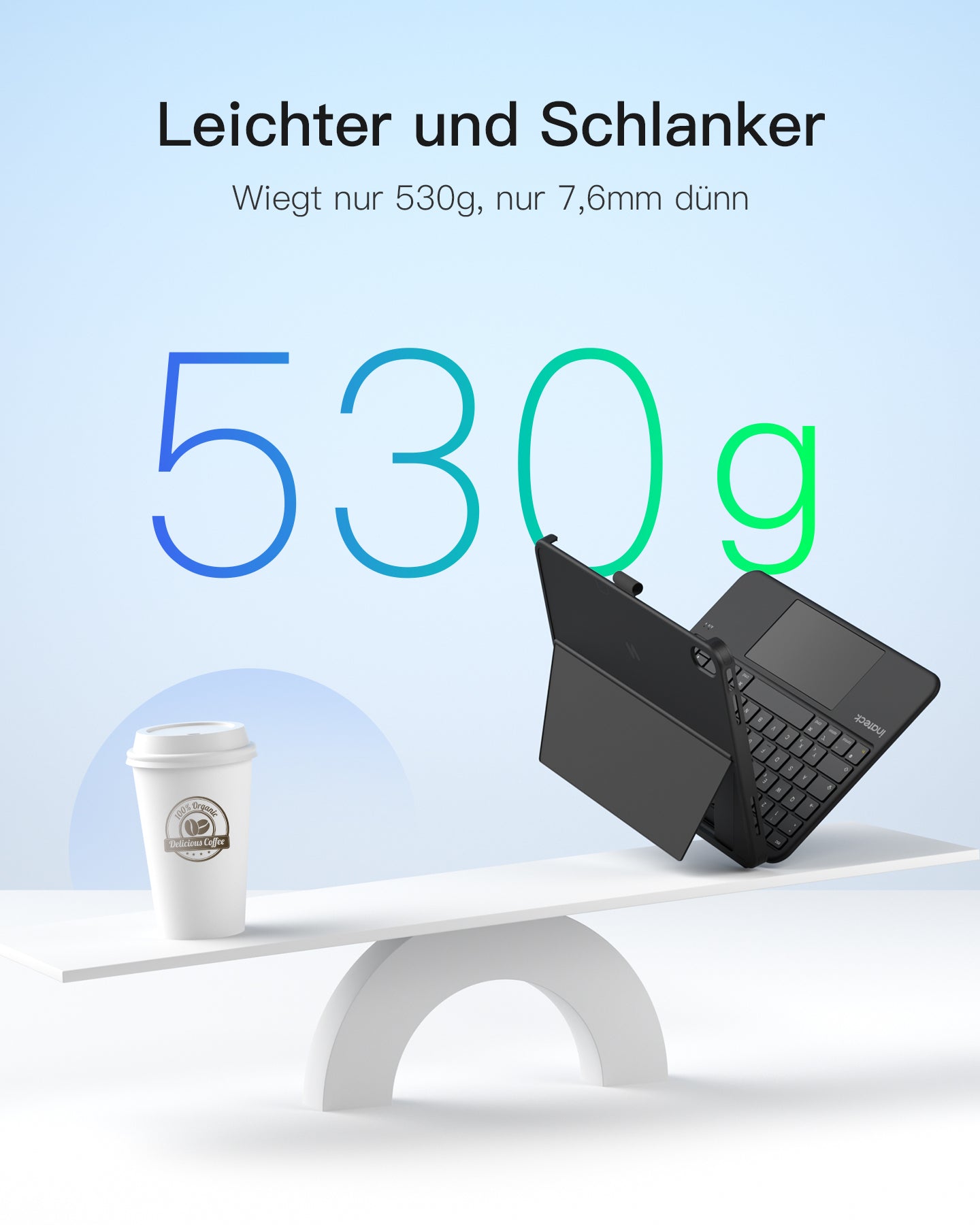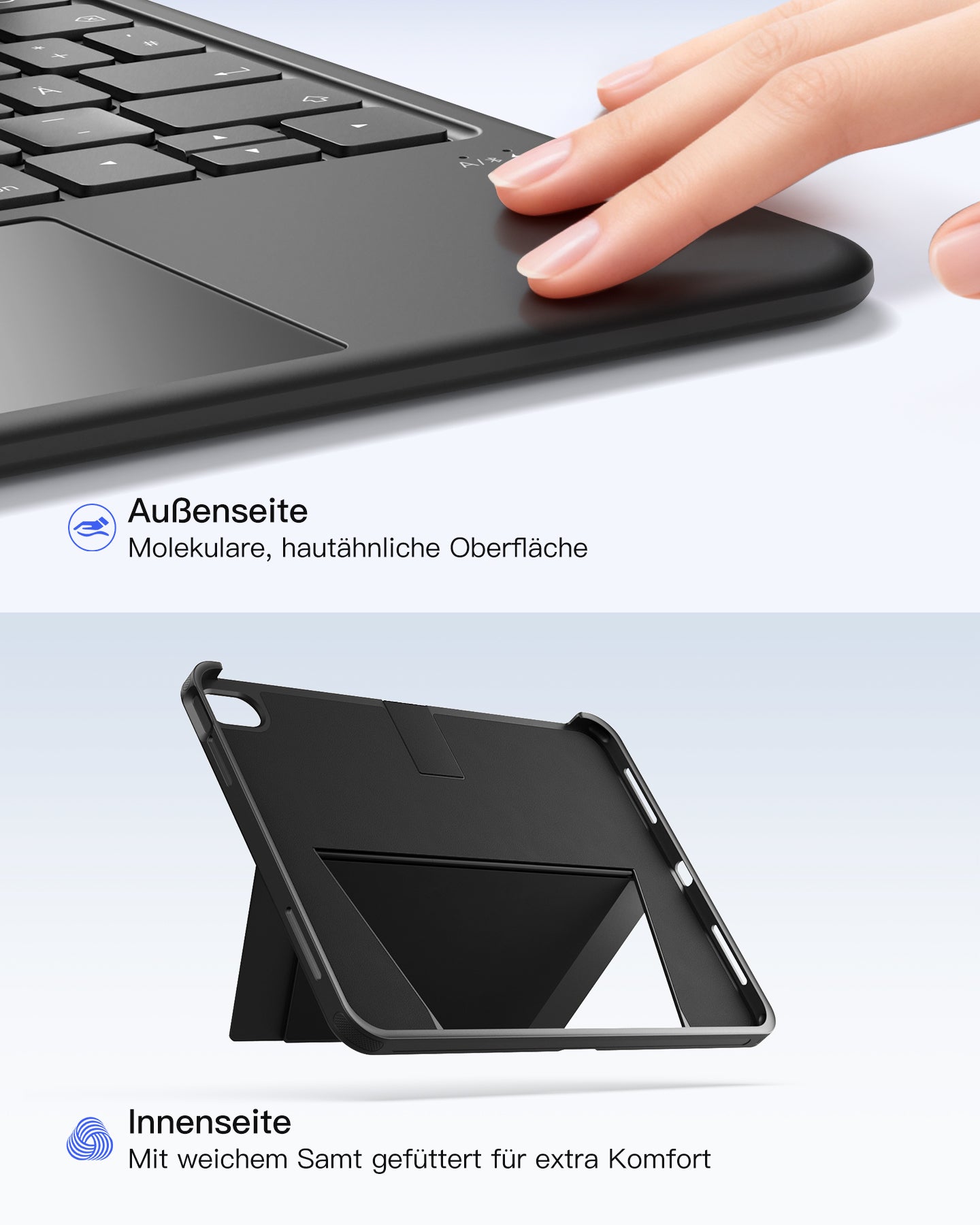 inateck DE Abnehmbar Hülle mit Tastatur für iPad 11" A16 2025, iPad 10.9" 2022,mit Stifthalter, QWERTZ, AceTouch, KB403-10