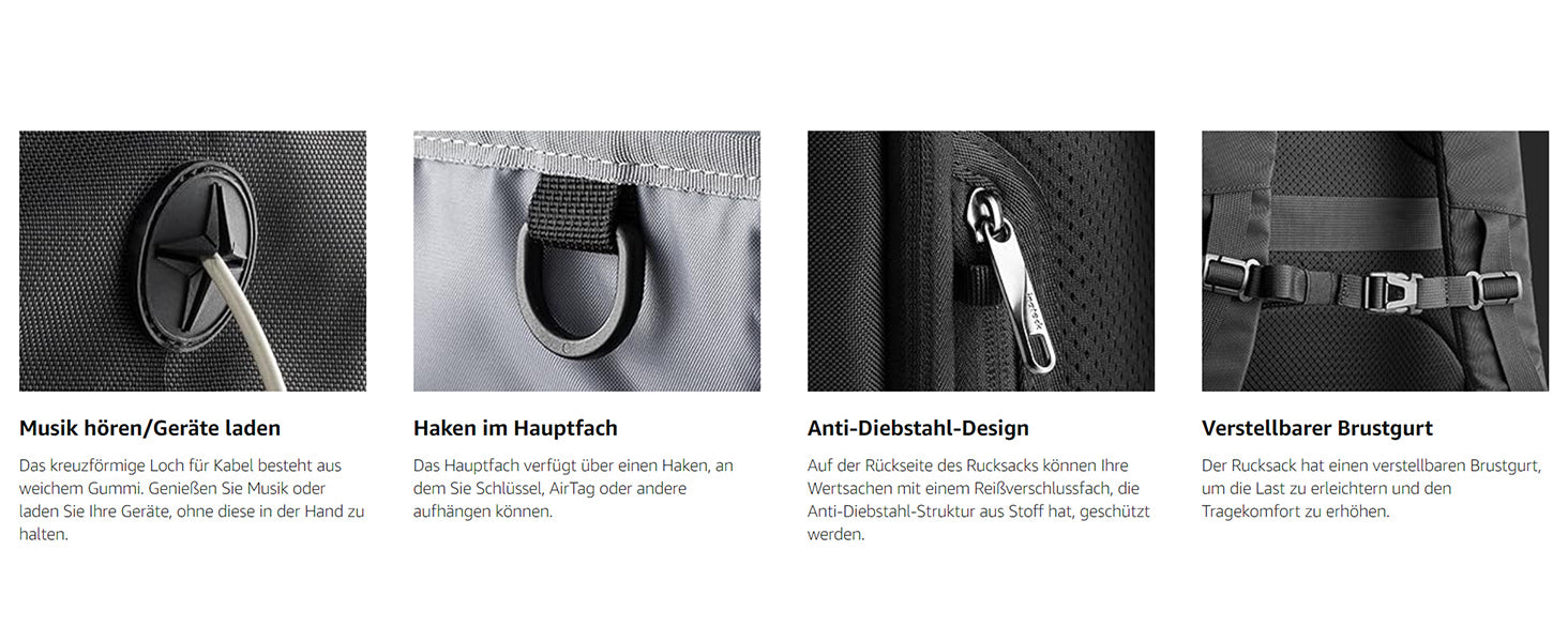 - Bequem und komfortabel: Der Rucksack verfügt über ein Netzgewebe auf der Rückseite für bequemen und atmungsaktiven Tragekomfort. Die abnehmbaren Brustschnallen entlasten die Schultern und erhöhen die Stabilität des Rucksacks. Der obere Griff macht den Rucksack zu einem robusten Handgepäck. Der Gepäckriemen auf der Rückseite macht es bequem, den Rucksack während der Reise an einem Gepäckgriff zu befestigen.