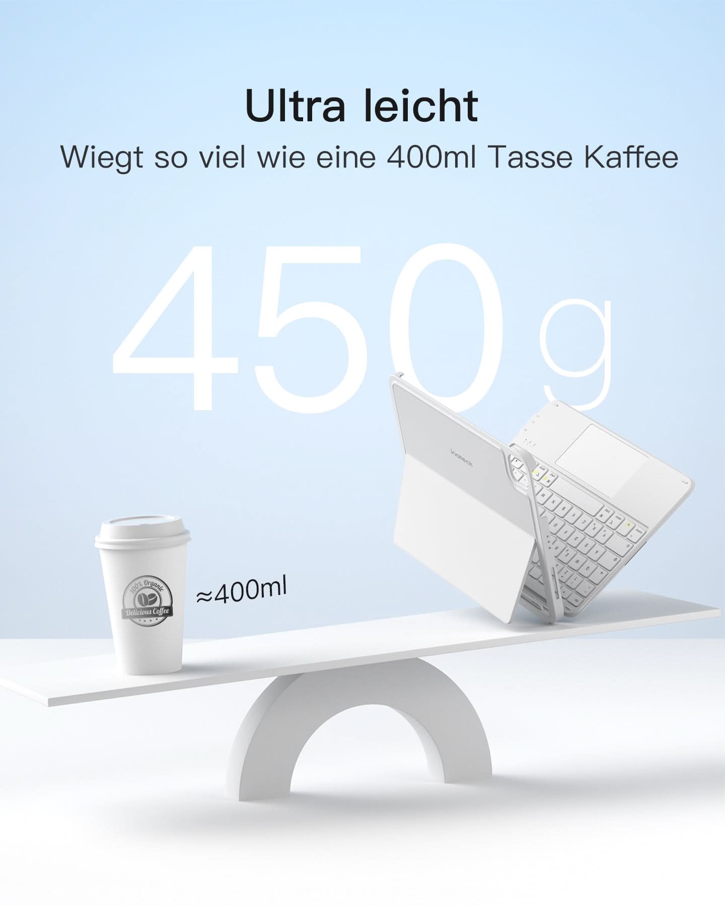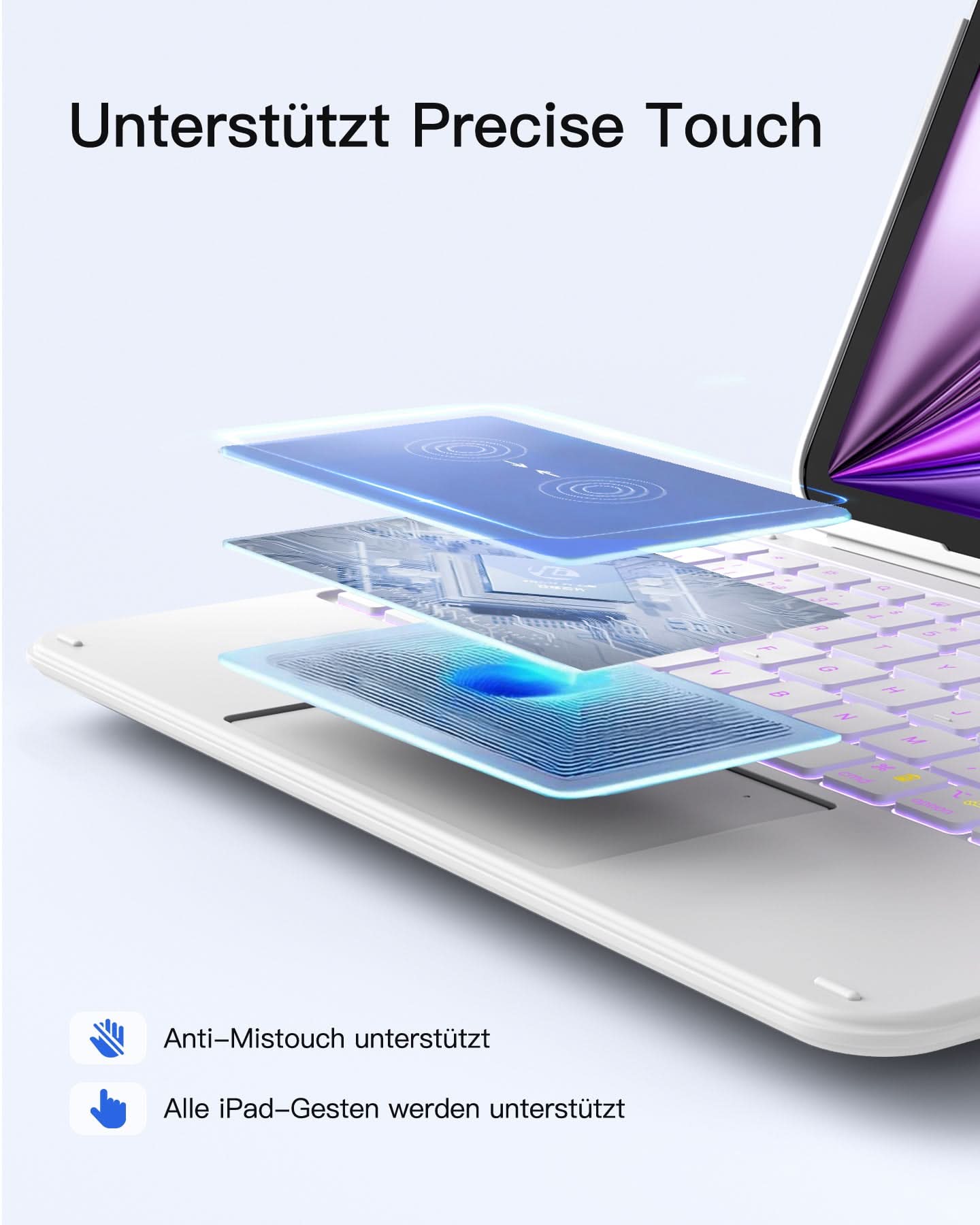 Abnehmbar Ultraleichte Tastatur für iPad 11/10 Gen A16 2025 11 Zoll, iPad Air 11" M3/M2, iPad Air 5/4, iPad Pro 11 4/3/2/1, 7-Farbiger Beleuchtung, QWERTZ,AceTouch, KB04122-RGB