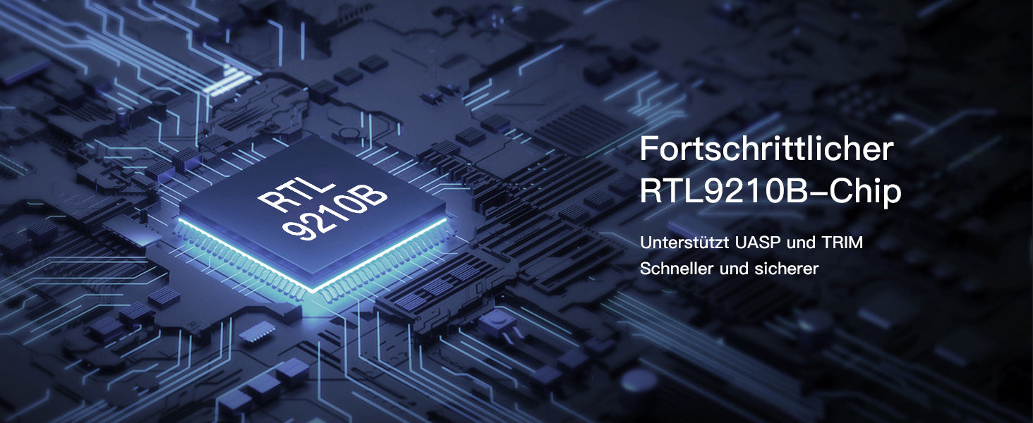 - Sicher und stabil: Das USB-C NVMe-Gehäuse verfügt über den fortschrittlichen RTL9210B-Chip, der UASP- und TRIM-Funktionen unterstützt. Dies reduziert die CPU-Belastung, erhöht die Übertragungsgeschwindigkeiten und verringert die Anzahl der Schreibzyklen, wodurch die Lebensdauer der SSD verlängert und die Sicherheit Ihrer SSD und Daten gewährleistet wird.